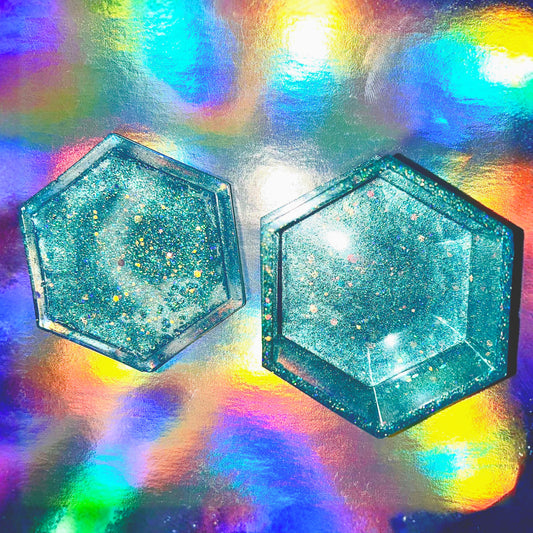 "Ice, Ice Boxy" Glittery/Sparkly Resin Jewelry Box With Pearls and Unique Star Sequins